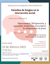 Materialidad, Wittgenstein, y aguacates: inspección sensorial en la compraventa de fruta. III Coloquio "Lengua y Literacidad", Centro de Investigaciones Filológicas, Universidad de Guadalajara, virtual event.